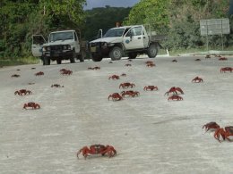 アカガニの一大生息地として知られるインド洋のクリスマス島は、陸生甲殻類のほかにもさまざまな希少動物が生息する特別な場所で、オーストラリアの国立公園に指定されておりパークスオーストラリア(公園管理局)が管理にあたっています。