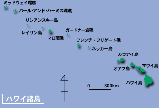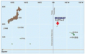 北西ハワイ諸島、日付変更線付近に位置し、日本から約4100キロ、ホノルルからおよそ2000キロ。