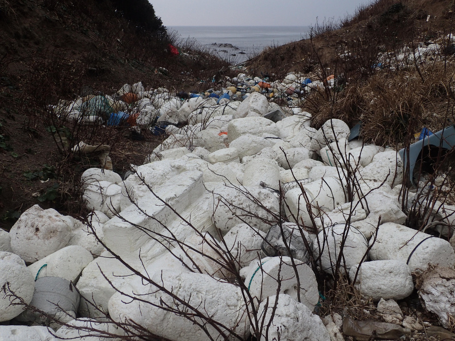しかし、海流の影響で国内外から大量の漂着ごみが押し寄せます。漂着ごみは、発泡スチロールやプラスチック製のフロート、漁網やロープ類などのプラスチックごみがほとんどで、分解されることなく半永久的に海洋環境に留まります。