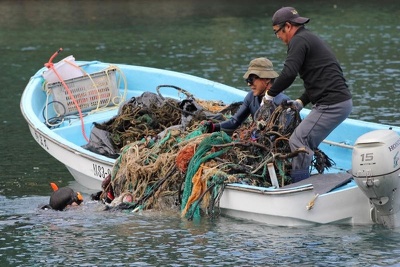 漁網やロープは波浪などで再び海へ流出し、海洋生物を傷つけたり捕獲し続けたりする「ゴーストフィッシング」の原因となります。これは、対馬だけの問題ではなく世界中の海で起きていることです。