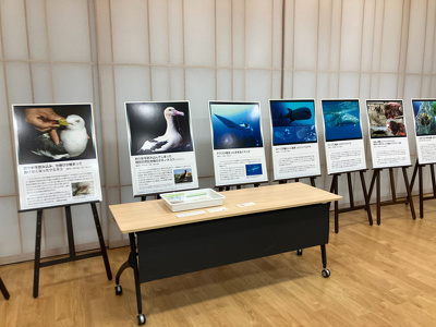 海洋プラスチックごみが海の生きものに与える被害の実態を伝える写真パネルと実際に現地で採集したプラスチック類の実物展示を通じて、海洋ごみについて考える機会を提供します。