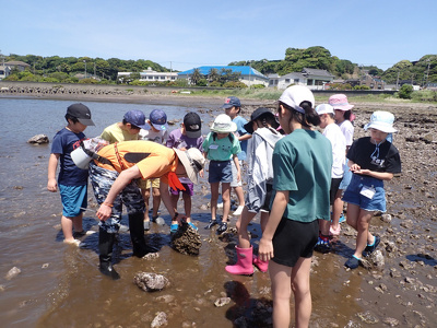 身近な海にいろいろな種類の生き物がいることを、楽しみながら学びます。