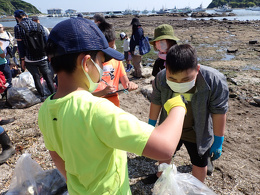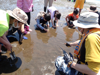 江奈湾西側の泥干潟ではなく、東側の磯と砂れき干潟、砂浜での開催です。