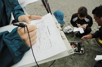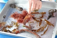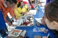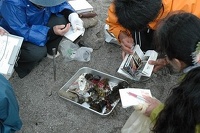 ▼何を発見?分からないものは図鑑で調べて、名前や数量などを所定の記録用紙に記入します。