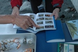 およそ40分間の調査で、海藻類・貝類・甲殻類などさまざまな生き物(生き物の痕跡)が集まりました。