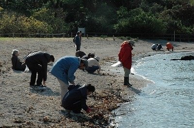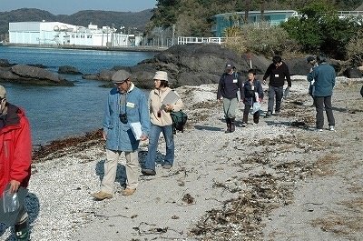 その後汀線に打ち上げられた生きものの採取記録を約1時間行いました。