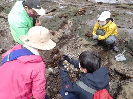 午前中は磯や干潟を各々で観察し、生き物調べを行いました。