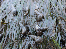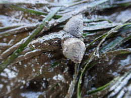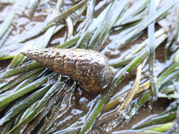 今回の観察会では、ウミニナ、ホソウミニナなどの殻上に付着しているツボミガイ(RD種)があちこちで大量に観察できました。