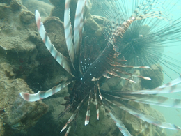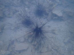 29日は、スノーケリングでの水中探索、ガイドブック制作のための撮影などを行いました。水中探索ではコアマモや造礁サンゴのキクメイシモドキの分布域を調べました。汽水域だというのにガンガゼが大量発生しており、立派なハナミノカサゴにも出合いました。