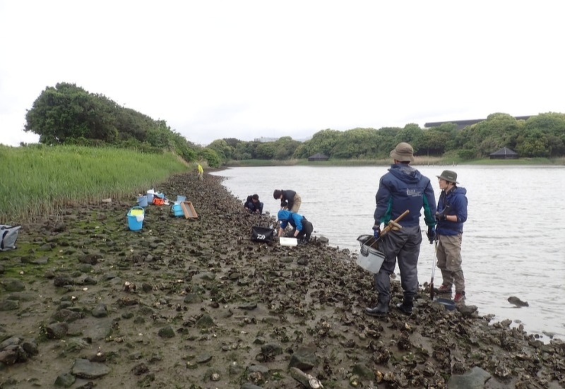 今回の取り組みは、日本野鳥の会との連携により、野鳥公園内の潮入りの池と前浜干潟に生息するベントス類を網羅的に調べようというもので、OWSとその協力研究者チーム11名による任意調査となりました。
