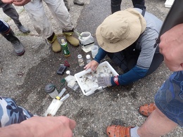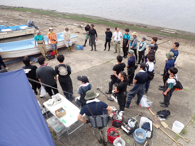 今回もOWS干潟調査メンバーのほか、協力研究者、地元小学校教員、石巻専修大の海洋ベントス研究室メンバーなど意気盛んな29名での定性調査を行いました。また、江奈湾での活動で連携している日大海洋資源科学科&動物学科チームも西干潟でのコドラート調査とウミニナ類の調査を実施し、総勢42名という大人数での活動となりました。