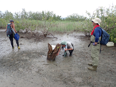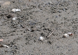 今回の調査地は、太田川の河口の左岸に広がるヨシハラとハマボウ群落周辺の干潟と干潮時に干出する小規模の中州です。調査の結果、貝類や環形動物などの多様性が限られている一方、ゆかし潟とは異なる甲殻類の希少種も見つかり、貴重な干潟であることがわかりました。