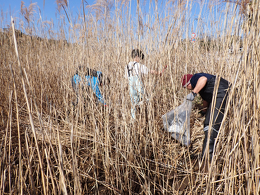 ヨシ原の漂着ごみ回収