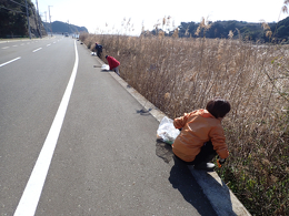 県道沿いの投棄ごみを回収