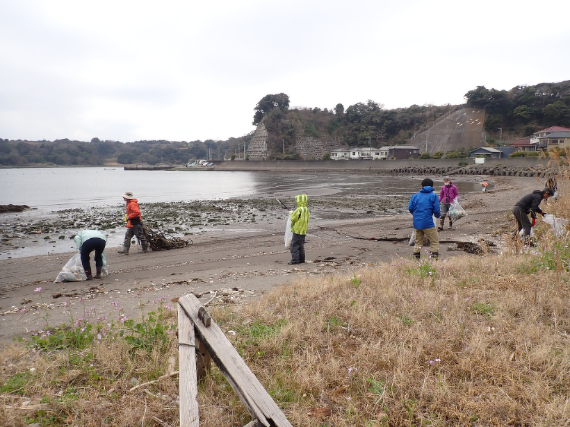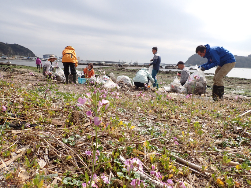 ランチの後は時おり日差しも出て、気持ちのいい春日の中、漂着ごみの回収活動を行いました。