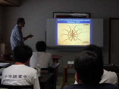 4日夜に開催した恒例の研修会では、京都大学フィールド科学教育研究センターの宮崎勝己先生によるカイヤドリウミグモの研究、広島大学の冨山毅先生によるカレイと干潟生物の研究、西海区水研の山田勝雅による干潟生物研究の幅広い話題を提供いただき、大変充実した内容となりました。