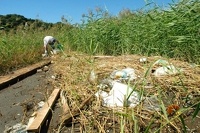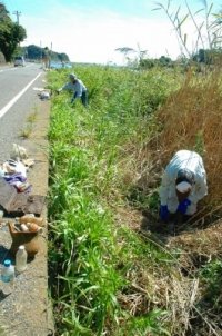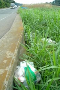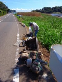 国道沿いは投棄ごみがいっぱいです。草やヨシで見えにくいため投棄されやすい?