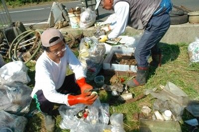 回収したごみは指定どおりに分別します。劇薬の殺線虫剤の缶も転がっていました。