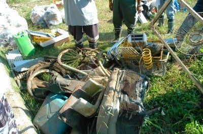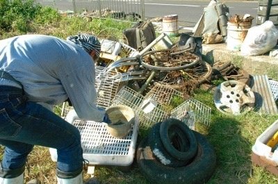 投棄された粗大ごみもたくさんありました。ソファー、タイヤ、自転車、炊飯器、、トースター、ノートPC、ポリタンク、バイクのマフラー、バットなど。