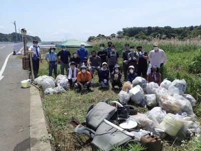 2021.05.18up ■江奈湾干潟観察会&ごみ回収活動終了 2021年5月 干潟保全活動 #海洋ごみ #干潟 今回は日大生物資源学部のチーム10名も加わった21名での活動となり、潮回りの関係で、午前中のごみ回収活動となりました。 コロナ禍のため、昨年2月以来の実施でしたが、投棄ごみはやや少なく、これまでの活動の成果を少し感じました。 それでも1時間半の活動で、189㎏のごみを回収することができました。 午後は小グループに分かれ、久しぶりに干潟の生きもの観察を楽しみました。 皆さまお疲れ様でした。
