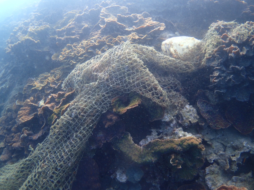 今回は10名で水中に沈んだ漁具・ロープ類などの引揚げと、海外から塊状で漂着した魚網やロープ、フロートなどのごみを手分けして回収しました。この活動は、毎年実施している造礁サンゴモニタリング調査で、水中に滞留するロープや漁具などの滞留ごみがサンゴを傷めていることを目の当たりにしたことから、2018年11月に初めて実施したものです。今回は4年ぶり、2回目の実施となりました。