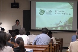 東京海洋大学文化祭『海鷹祭~環境企画』にて、OWS写真パネルを展示、事務局の浪崎が講演しました。