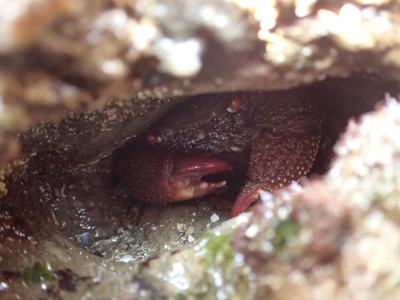 磯では、岩の隙間に大きなイボイワオウギガニがたくさんいました。