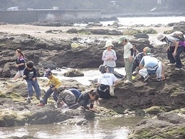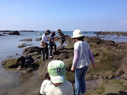 2チームに分かれ、磯の貝や甲殻類、魚類等の生き物を観察し、それぞれの生態についての説明を聞きました。