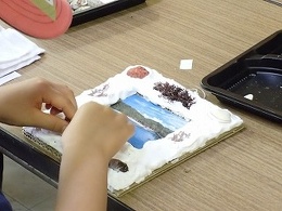 午後からは海岸で集めてきた貝殻や流木、シーグラスなどを使ってフォトフレーム作りを行いました。