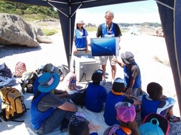 オリエンテーションでカメラの使い方とコツを習ったらグループに分かれて海辺へ出発。