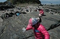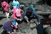 海岸では流れ着いた海藻や、岩にすんでいるいろいろな貝を見つけたり、イソギンチャクやアメフラシなど、たくさんの生きものを観察できました。