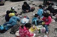 あっという間にお昼の時間。お母さん手作りのお弁当を海岸で食べました。