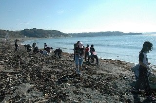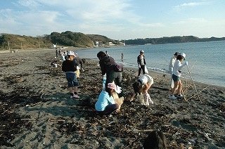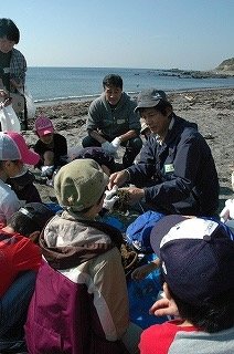 最初に和田長浜海岸で漂着物(流れ着いた生きものやゴミ)などの観察をしました。