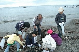 最初は砂浜海岸で漂着物の収集・分類・観察を行いました。