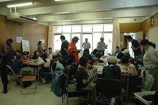 お弁当の後、教室の中で午前中に採集した漂着物をじっくり観察しました。