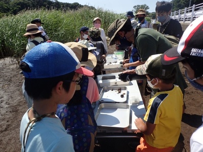 2021.07.27up ■ネイチャースクール三浦【干潟・磯コース】終了 ネイチャースクール 好天に恵まれた7月25日、江奈湾でのネイチャースクール(干潟・磯コース)は21名の親子が参加し、無事終了しました。 参加者はほぼ干潟が初めての皆さんでしたが、たくさんの生き物を観察、撮影することができ、とても充実した一日となりました。とりわけ16種を超えるカニを観察することができ、カニ好きの子供たちにとっては忘れられない体験学習となったはずです。 スタッフの皆さんお疲れ様でした。 このプログラムは、オリンパス株式会社の協賛を受けて実施しました。
