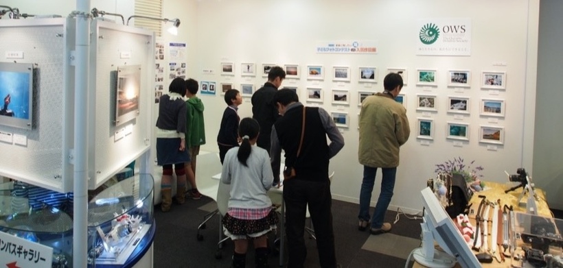 ご家族も含め60名の方にご来場いただき、各受賞者に賞状や副賞のカメラなどが授与され、表彰式の後は、OWSのメンバーで審査員の海洋写真家・杉森雄幸さんのスライドトークショーを行いました。