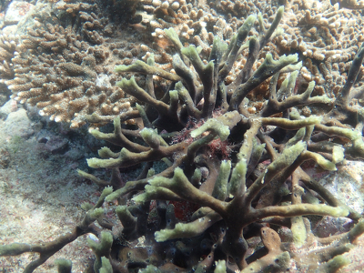 スギノキミドリイシの回復も少しずつ確認できるようになりましたが、まだ時間がかかりそうです。これまであまり見られなかったカイメン類も少し増えていて、注視していく必要があります。
