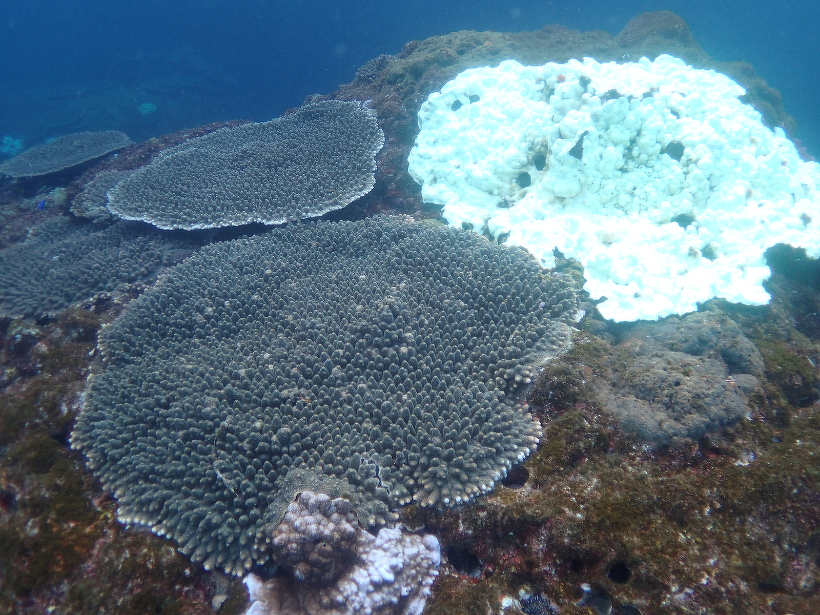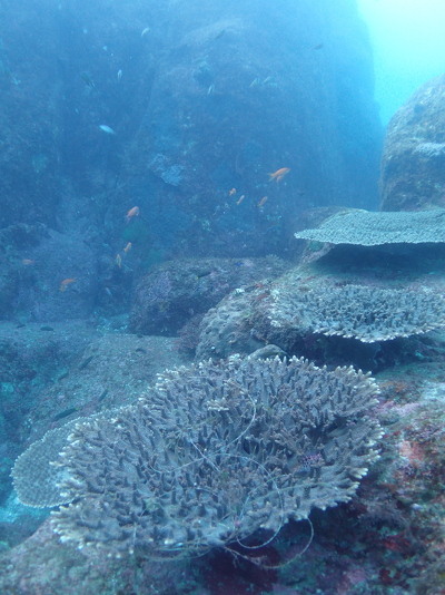 昨年の安良里調査ではこれまでにない規模の白化や斃死が確認されましたが、今回は大きな変化はありませんでした。