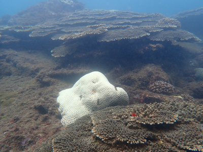 今年は台風による大きな被害はありませんでしたので、白化からの回復にはもう少し時間がかかりそうですが、何とか美しい水中景観は残されることでしょう。