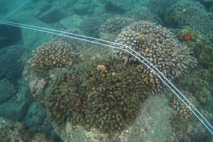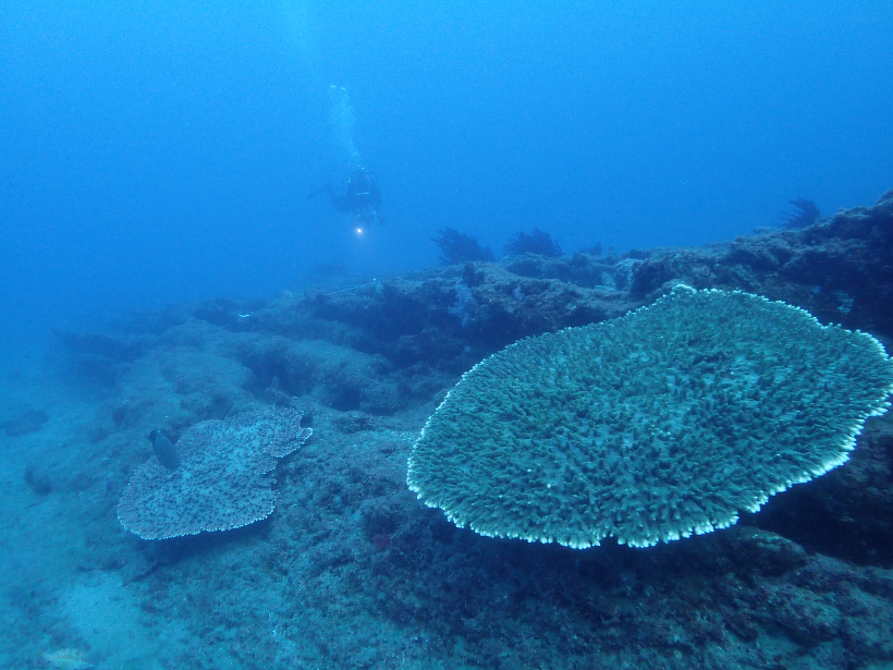 坂田の各調査区のサンゴ群集は、いずれも順調に成長していました。数年前ほぼ消失したニホンアワサンゴ類が小群体ながら多数着生していました。