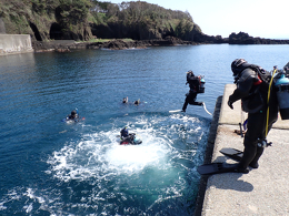 今回の調査は、佐渡島の南端に近い琴浦の小木ダイビングセンター(代表:高嶋廣光氏)の協力で、琴浦地区のキクメイシモドキ群体の分布状況を確認することにありました。調査は山野教授とOWSチーム5名に加えて、小木ダイビングセンターの高嶋さん父子が加わっていただき、2日間に渡って実施しました。