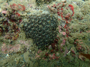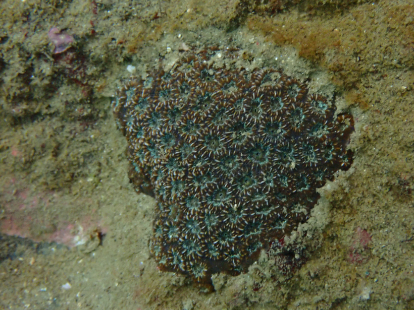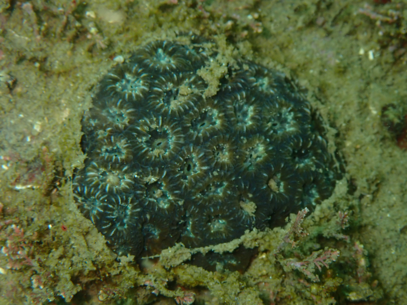 今回の調査は、昨年10月に確認したキクメイシモドキ9群体のその後の様子を調べることと周辺の新規加入群体などを探索することでした。昨年同様、現地ダイビングサービス・アーバンスポーツさんに協力いただき、4名での調査を行い、9群体を再確認することができました。