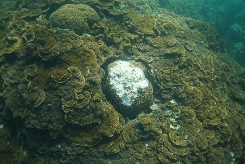 2020.11.13up ■壱岐調査を完了。一部のサンゴ、病気で白化か サンゴ調査&魚類調査 11月12日(木)、好天に恵まれ壱岐調査を完了しました。 各コドラート内のサンゴおよび周辺サンゴに特筆すべき変化はありませんでしたが、一部病気と思われるキクメイシ類を数群体確認しました。半城湾の神瀬周辺海域でのサンゴ群集目撃情報があり、今年度中にも探索調査を実施することとなりました。楽しみです! 病気と思われるキクメイシの仲間