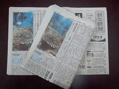 7月18日の朝日新聞東京朝刊1面にこの調査の様子が大きくカラーで紹介されました。