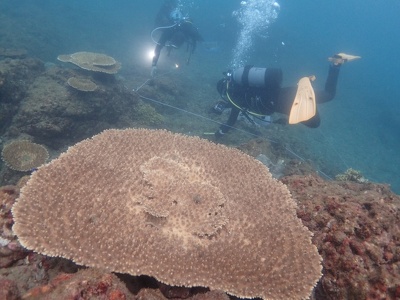 2021.10.20up ■安良里・田子調査終了(2021年度) サンゴ調査&魚類調査 #サンゴ #サンゴ調査 10月16日~17日安良里・田子調査を無事終了しました。 安良里調査は波もなく抜群の透明度に恵まれ、快適な調査となりました。安良里、田子ともにサンゴは順調に成長しており、大きな変化はありませんでした。 また、双方とも南方系魚種の増加が著しく、水温上昇の影響を実感させられました。調査開始時から観察しているエンタクミドリイシは今年も大きく成長していました。 安良里 ハタタテハゼ 田子調査の様子
