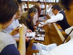 休憩時間には杉原さんにお持ちいただいたサンゴの骨格標本で解説をうけ、その繊細さと美しさに皆さん目を見張っていらっしゃいました。