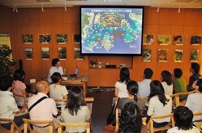 またスライドで紹介された石西礁湖におけるサンゴの平均被度の変化のグラフは、20年間にわたる継続調査の蓄積。それが変化のパターンや変動要因、また今後の傾向や対策を考えるうえでの貴重なデータになるんだなと、実感。続けていくことが、何よりも大切なんだということ、改めて思いまし た。過去に遡って、その年のデータをとることは出来ないですし…。
